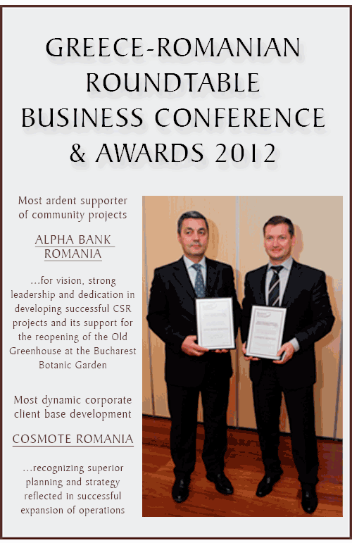 More Greek businesses are expected to come and test the waters in Romania, as they are looking for ways to offset the troubled economic prospects at home. Displaying a largely upbeat tone during Business Arena's recent Greece - Romania Roundtable Conference and Awards 2012, the representatives of the Greek business community agreed that Romania still offered good development opportunities. This annual event was hosted by the Ramada Plaza Hotel and was organized with the support of the Embassy of Greece in Romania and in partnership with Cosmote Romania and Coca Cola Romania. The event ended with an award ceremony to recognize the outstanding achievements of Greek-owned companies and banks. Emphasizing that Greek business people continue to develop their operations in Romania unobstructed by the economic situation at home, Greek Ambassador Georgios Poukamisas told the participants that both Romania and Greece had been called to make great efforts and take difficult decisions towards fiscal consolidation and reforms.