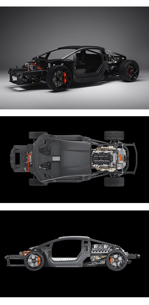 Timp de 60 de ani, Automobili Lamborghini a fost sinonim cu inovația de ultimă oră. Cu doar câteva săptămâni înainte de lansarea primului vehicul hibrid plug-in V12 High Performance Electrified Vehicle (HPEV), marca din Sant'Agata Bolognese dezvăluie o soluție tehnică unică în peisajul auto actual. LB744 se bazează pe un nou șasiu inspirat de aeronautică, "monofuzelajul". Pe lângă o monococă realizată în întregime din fibră de carbon multitehnologică, dispune de o structură frontală din Forged Composites - materiale compozite forjate: un material special realizat din fibre de carbon scurte îmbibate în rășină. Această tehnologie a fost patentată și utilizată de Lamborghini în primele sale aplicații structurale încă din 2008.