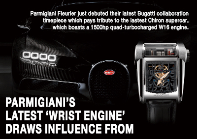 Parmigiani Fleurier just debuted their latest Bugatti collaboration timepiece which pays tribute to the lastest Chiron supercar, which boasts a 1500hp quad-turbocharged W16 engine.